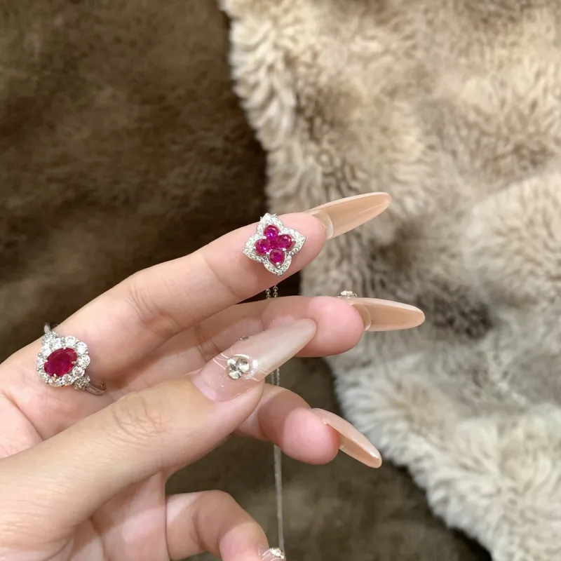 925 Sterling Silver Light Luxury Elegant Ruby Four-Leaf Clover Pendant Necklace